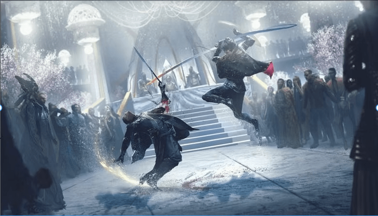 Darrow takes Cassius’ arm at the gala massacre, Golden Son. Artist unknown